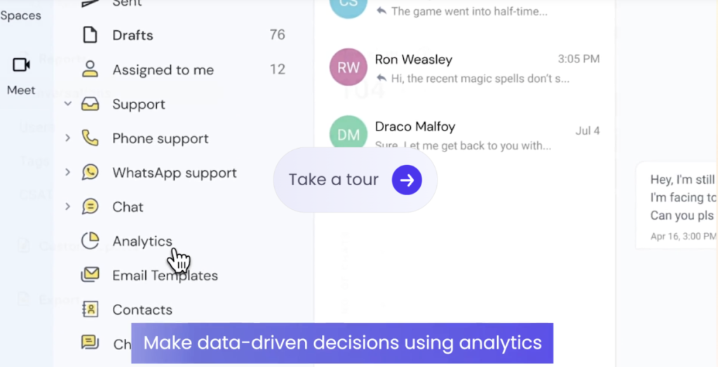 As and when your team handles emails and communication across other channels, the analytics dashboard gets populated with performance metrics. These are crucial in helping you understand what’s going well and where the gaps lie.